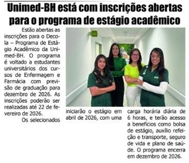 Estão abertas as inscrições para o Decola – Programa de Estágio Acadêmico da Unimed-BH. O programa é...