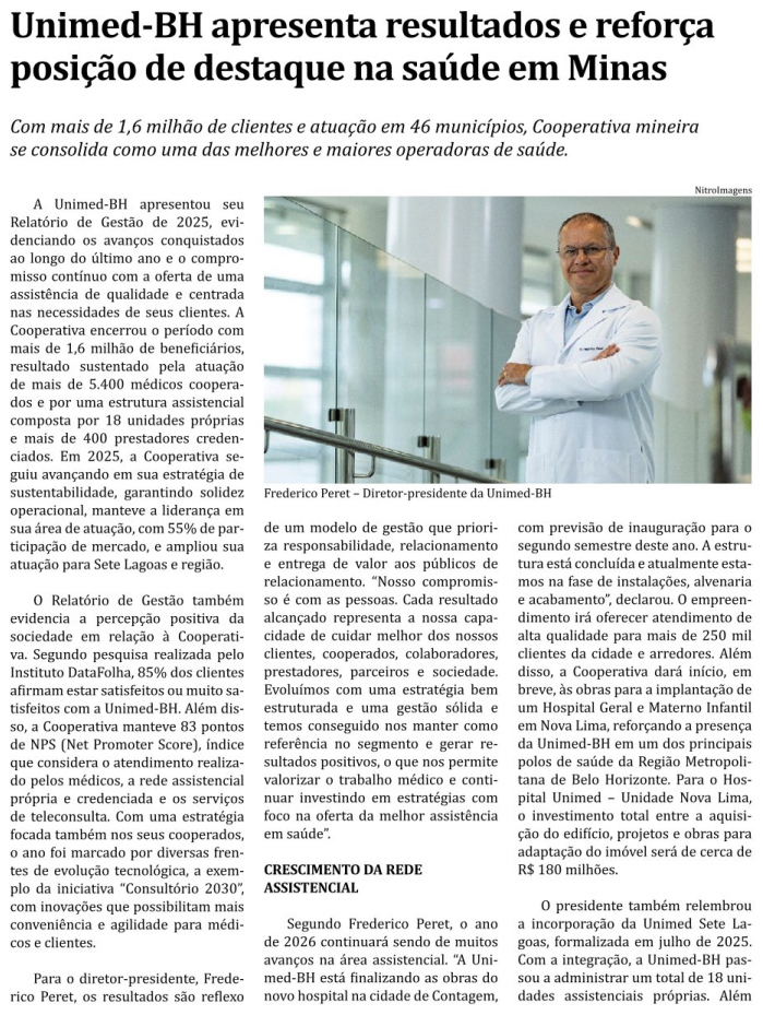 Semanalmente, a Unimed-BH é destaque na imprensa. A divulgação do Relatório de Gestão 2025, o lançamento do FIP Saúde, a participação dos médicos cooperados e a ação do Dia do Jornalista foram os temas que ganharam visibilidade.