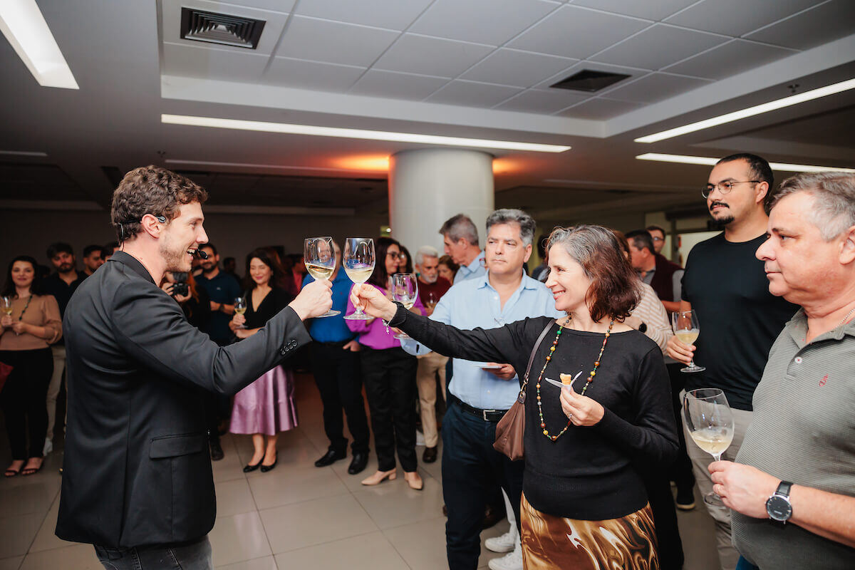 Logo após a apresentação, os mais de 200 presentes foram convidados a degustar três tipos de vinhos produzidos na vinícola Luiz Porto – um branco e dois tintos. Luiz conduziu a apresentação, mostrando detalhes da uva, e os convidados saborearam os vinhos que nasceram de terras mineiras e que estão mudando a história da região.