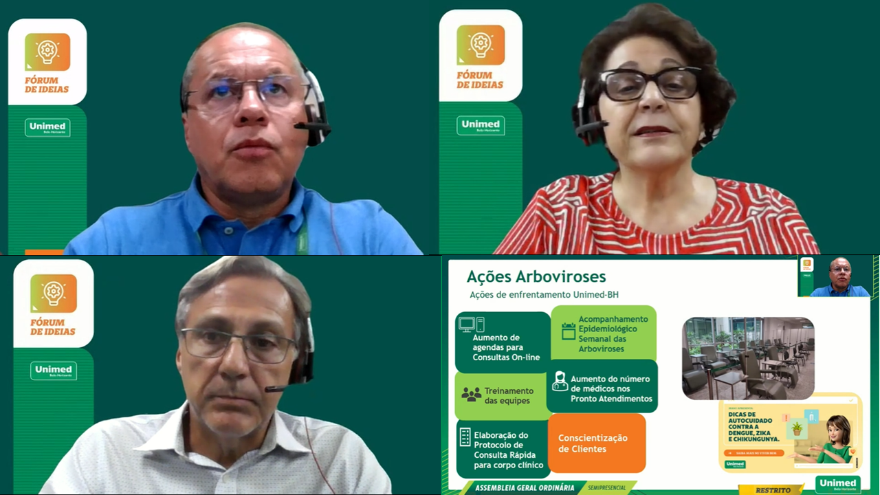 Cerca de 3.500 cooperados participaram do Fórum de Ideias Especial na noite da última terça-feira, 19/03, e conheceram de forma antecipada os assuntos que serão tratados na Assembleia Geral que acontece na próxima quarta-feira, 27/03. O diretor presidente da Unimed-BH, Frederico Peret, abriu o encontro falando dos desafios assistenciais diante do cenário das arboviroses e agradeceu o empenho de todos que estão na linha de frente.