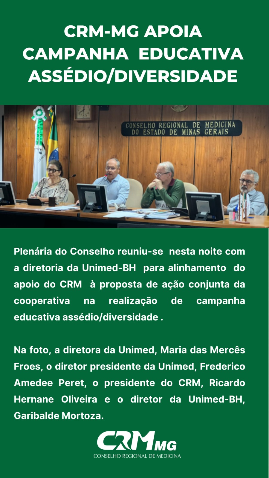 O Conselho Regional de Medicina de Minas Gerais realizou no último dia 15/02 uma plenária com os seus conselheiros para apresentar a proposta de campanha para sensibilização sobre um tema atual e que impacta sobremaneira a categoria médica e toda a sociedade; Diversidade e Assédio.