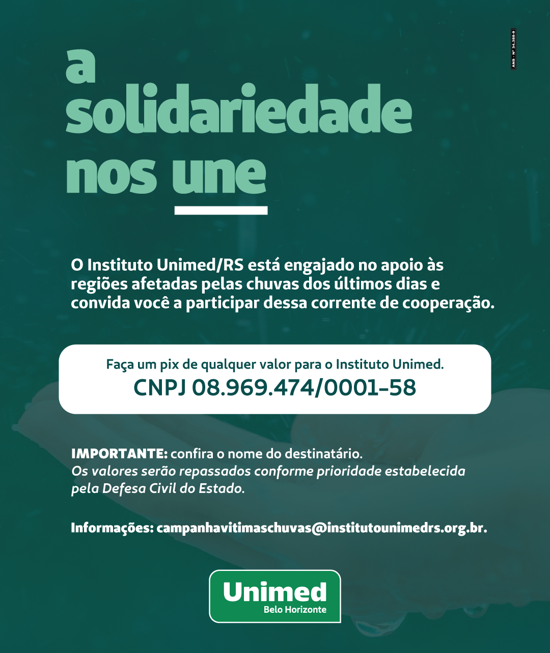 O Brasil está mobilizado para fazer suas doações aos moradores do Rio Grande do Sul e o Instituto Unimed-BH também está engajado no apoio aos moradores das regiões afetadas pelas chuvas.
