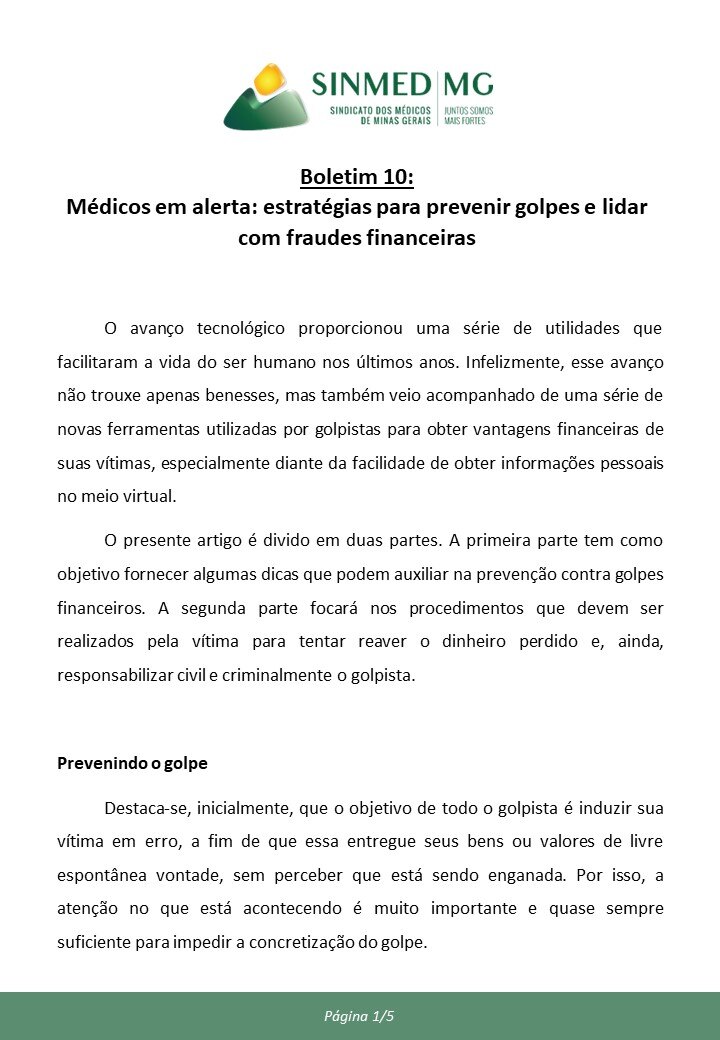 Sinmed-MG (Boletim 10) - Médicos em alerta: estratégias para prevenir e lidar com golpes