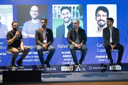 Durante o painel, os especialistas discutiram os desafios e oportunidades para médicos que desejam atuar no ecossistema de inovação. A conversa abordou a importância da mudança de mentalidade, da capacitação em ferramentas empreendedoras e do propósito como motor da transformação.