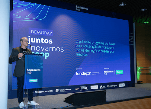 Após o painel, aconteceu a apresentação final das startups criadas pelos médicos cooperados e aceleradas com o suporte e mentoria da equipe do Horizontes Hub. Cada grupo teve sete minutos para “vender” sua proposta para um grupo de jurados formado por profissionais e investidores de diferentes setores.