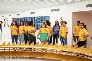 Alunos do projeto A Cor da Comunidade, patrocinado pelo Instituto Unimed‑BH e executado pela CDM –Cooperação para o Desenvolvimento e Morada Humana, participaram de uma atividade especial: um passeio de integração ao Centro Cultural Unimed‑BH Minas, projeto também patrocinado pelo Instituto.