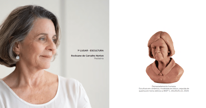 Sua prática dialoga com sua trajetória médica, ao transformar percepções e sentimentos em matéria palpável. Premiada duas vezes no Concurso de Artes Plásticas da Unimed‑BH e participante de exposições nacionais, Rocksane reforça nesta mostra sua pesquisa sobre a condição humana por meio da forma.