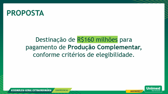 Como parte da remuneração de médio prazo está a Produção Complementar. Na Assembleia Geral Extraordinária, que será realizada na próxima segunda-feira - 24/11, a proposta é que sejam distribuídos R$ 160 milhões em produção complementar, 6,67% a mais que em 2024, quando houve a distribuição de R$ 150 milhões.