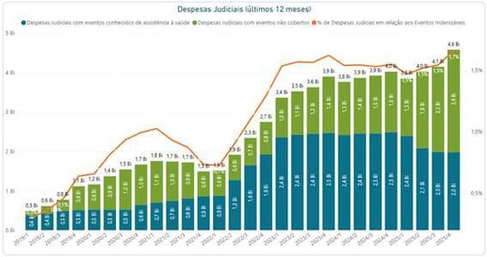 Durante sua apresentação, Frederico Peret destacou que a judicialização da saúde tem crescido de forma contínua e multifatorial, pressionando tanto o Sistema Único de Saúde quanto o setor suplementar. Segundo a Agência Nacional de Saúde Suplementar (ANS), os gastos judiciais das operadoras atingiram a marca de R$ 4,6 bilhões, um aumento em relação aos R$ 4 bilhões do ano anterior.